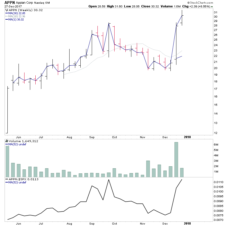 RE: US Stocks - Watchlist and Discussion - GlobalCitizen - 2017-12-24 Is anybody lookin at TRXC? Seems like a classic Stan Weinstein textbook breakout. RE: US Stocks - Watchlist and Discussion - isatrader - 2017-12-24 (2017-12-24, 07:09 PM)GlobalCitizen Wrote: Is anybody lookin at TRXC? Seems like a classic Stan Weinstein textbook breakout. I wouldn't call it a classic textbook breakout myself. As it went straight from Stage 4 into Stage 2 without basing and moved over 1000% in five months or so. So not a typical Weinstein pattern imo. But if you are going to trade it then make sure you manage your risk. RE: US Stocks - Watchlist and Discussion - isatrader - 2017-12-24 A few more for the US watchlist - APTI, ARRY RE: US Stocks - Watchlist and Discussion - isatrader - 2017-12-25 (2017-11-17, 12:33 PM)shaunattwood Wrote: Isa, I'd be interested to get your thoughts on Canadian cannabis shares. I just sold all of mine as they doubled in 2 weeks, mostly ACB. I'm looking for the following pullbacks for re-entry: $leaf if 14-15 + watching $hip hip.v for sub 40cents + $acb if $3.5 - $4 adding $weed partial buys at $17 $16 $15 above strong support at $14 + $imh if $1.2 or less + $CMED if 15-16 The canadian cannabis stocks continue to show strength and more importantly strong volume and all time highs. So as you said they tick a lot of stan's boxes. Shame I missed this one during my time off trading, as are exactly the kind of A+ patterns and volume that I look for with the method. RE: US Stocks - Watchlist and Discussion - shaunattwood - 2017-12-27 HMMJ sector surging to new high, lots of continuation breakouts today, just added more LEAF canadian RE: US Stocks - Watchlist and Discussion - isatrader - 2017-12-28 (2017-12-27, 08:08 PM)shaunattwood Wrote: HMMJ sector surging to new high, lots of continuation breakouts today, just added more LEAF canadian To give people a clearer picture of the HMMJ etf, here's a breakdown of the top stock holdings in the ETF. WEED.TO - CANOPY GROWTH CORP . 12.89% APH.TO - APHRIA INC . 12.08% ACB.TO - AURORA CANNABIS INC . 11.45% GWPH - GW PHARMACEUTICALS PLC . 9.73% SMG - SCOTTS MIRACLE-GRO CO/THE . 9.49% LEAF.TO - MEDRELEAF CORP . 8.85% PRMCF - CRONOS GROUP INC . 4.36% CNTTF - CANNTRUST HOLDINGS INC . 4.17% INSY - INSYS THERAPEUTICS INC . 3.12% CMED.TO - CANNIMED THERAPEUTICS INC . 2.91% RE: US Stocks - Watchlist and Discussion - isatrader - 2017-12-28 For the watchlist from yesterdays scans - AXAS, APPN, CBW.V, FND, GALT, JJU, JJM, GSP, JCO.V, LGO.TO, MGW.V, HIP.V, ROYT, DBC Note: Am noticing a number of oil and commodity stocks in the scans, with multiple commodity indexes at breakout levels. I've been looking for potential areas where rotation might be occurring for the start of the new trading year. As what led last year i.e. tech stocks etc are now showing a lot of late Stage 2s with Stage 3 patterns and even some breakdowns in to Stage 4. So oil and commodity stocks looks to be one possible area to look into that might benefit from some rotation out of last years leading sectors. As I'll be really interested to see what sectors the volume goes into at the start of the new year when the pros return and start allocating money. As that will give some clues on where to focus next. RE: US Stocks - Watchlist and Discussion - isatrader - 2017-12-29 Todays additions to the watchlist - ADVM, AXSM, BKX.TO, BOOM, COPX, OTEX Note: annother strong day for Canadian canabis stocks and energy / materials stocks also, with multiple stocks showing up in my scans, alot of which had already been highlighted. |