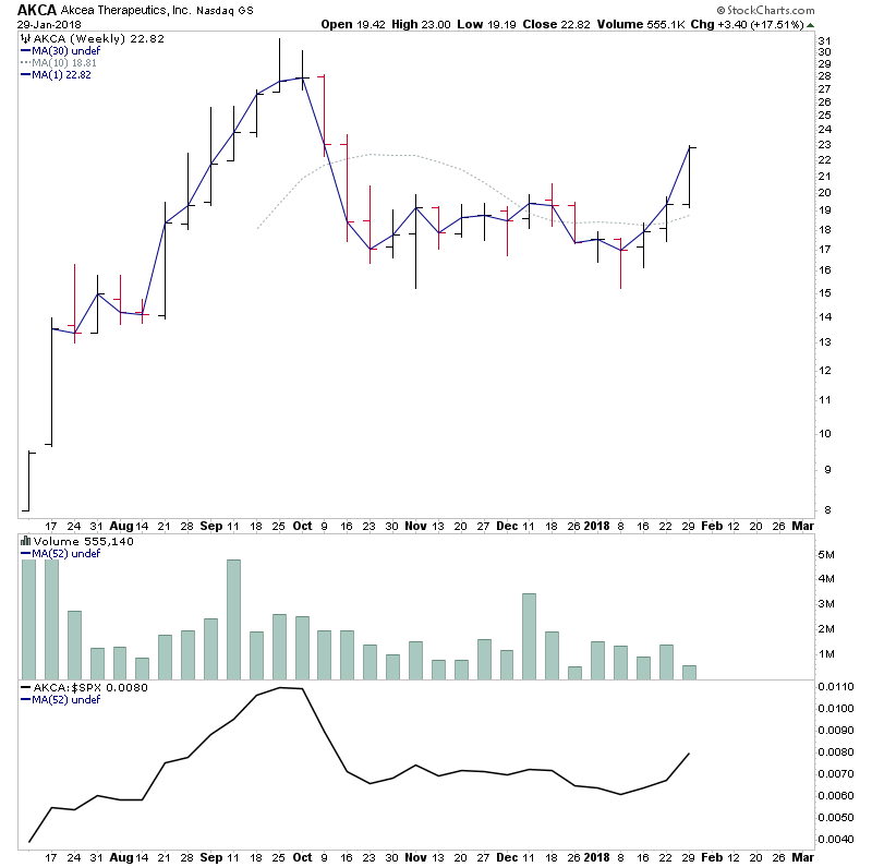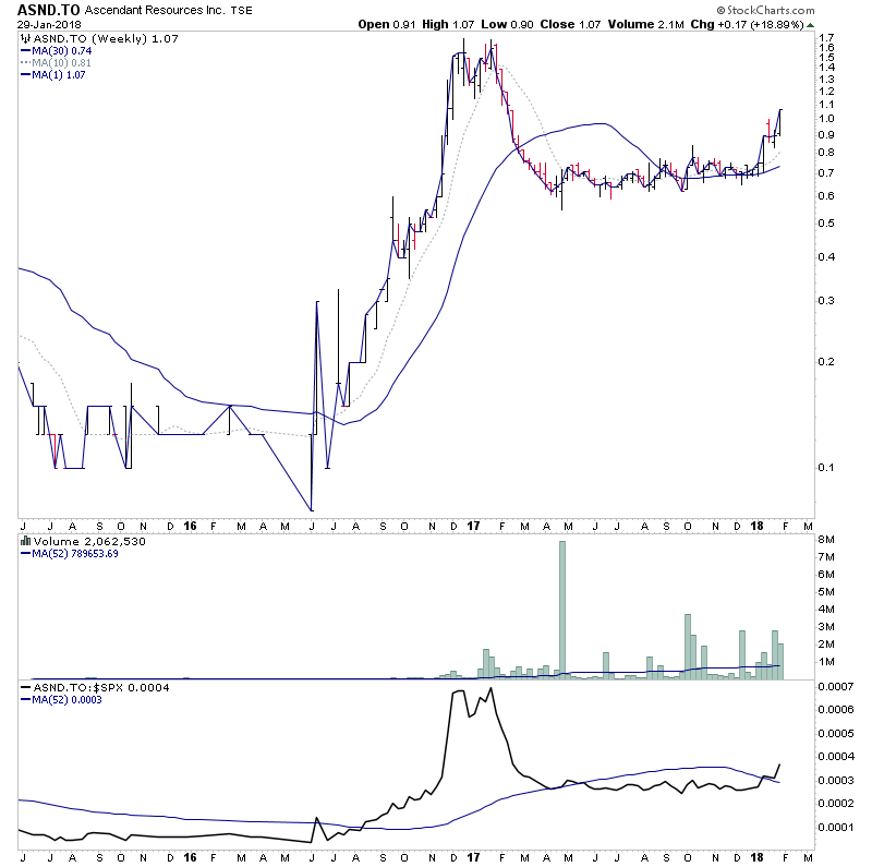 Sector focus: Gold Miners (part 1 of 3) - isatrader - 2018-01-28 Gold and Gold Miners are another area of interest currently, with the spot gold chart near the top of it's range on the weekly chart, and the potential for a monthly Stage 2A breakout. Sector focus: Gold Miners (part 2 of 3) - isatrader - 2018-01-28 If we do see a new Stage 2 breakout then history suggests that the gold miners are a leveraged way to play it, especially the junior miners, which can have very big moves. So I've gone through the gold miners charts in the US and Canada to look for the stocks getting strong volume increases and that are in good shape for a potential move or already moving. AEM, ANX.TO, AZ.TO, BTO.TO, BVN, CGE.V, CLE.V, CLH.V, CZX.V, DV.V, EDV.TO, FOM.V, GCM.TO, GBR.V, KGC, LGO.TO, LIC.V, MRZ.V, NEM, PGM.V, SAND, TK.V, TV.TO, USA.TO Sector focus: Gold Miners (part 3 of 3) - isatrader - 2018-01-28 RE: US Stocks - Watchlist and Discussion - isatrader - 2018-01-29 For the watchlist tonight - AKCA, ASND.TO, COP.TO, EGT.V, ENVA, GGB RE: US Stocks - Watchlist and Discussion - isatrader - 2018-01-30 Slim pickings tonight for the watchlist with the balance shifting to the breakdowns today, as you'll see in the Daily P&F Breakouts and Breakdowns in the US Market thread. However, I'm quite pleased personally, as unless we have put in a major top, it should give some opportunities for some better entry points. So I'll be watching how the stocks in the watchlist behave through the pullback to try and find the standouts that will lead if the major Stage 2 trend resumes. Here's a few for the watchlist tonight - NGQ.TO, PIF.TO RE: US Stocks - Watchlist and Discussion - isatrader - 2018-01-31 A few for the watchlist tonight - AMZ.V, AVEO, IMGN, NVGS, SRCI RE: US Stocks - Watchlist and Discussion - isatrader - 2018-02-02 For the watchlist tonight - AQ, ERN, JASO, KMPH, LPG, PRN.V, TWTR RE: US Stocks - Watchlist and Discussion - isatrader - 2018-02-06 For the watchlist - APTI, AQ, ARG.TO, ASND.TO, JASO, PAT.V |