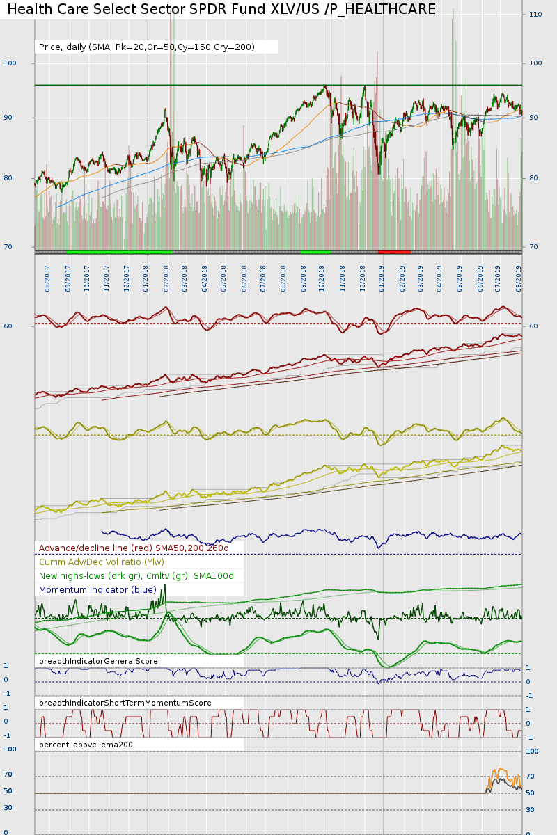 NYSE and Nasdaq Advance Decline Charts and US New Highs New Lows - isatrader - 2019-07-27 Attached is the updated NYSE and Nasdaq Advance Decline Breadth Charts, including the cumulative AD line, momentum index, cumulative AD volume line, 10 Day AD oscillator and the McClellan Oscillator and Summation Index. Attached is the updated US New Highs - New Lows Charts Cumulative P&F Breakouts - Breakdowns custom Breadth charts - isatrader - 2019-07-27 Attached is my updated custom breadth charts that I do based on the daily point and figure double top breakouts and double bottom breakdowns. Totals for the week: +368 double top breakouts -232 double bottom breakdowns +136 net breakouts - breakdowns US Sectors - Percent of Stocks Above their 150 Day Moving Average - isatrader - 2019-07-28 Below is the Percent of Stocks Above their 150 Day Moving Average table in each sector, which is ordered by overall health. Also attached is the visual diagram of the 9 sectors and the two major exchanges that make up the sectors that shows a snapshot of the overall health of the US market. Note: the overall sector average is at 60.60% currently (Stage 2 range) and gained +1.61% since last week, with Financials, Consumer Discretionary, Technology and Industrials advancing. The move in Financials was the biggest, as it gained +8.89% to move to 75.60% of Financial Stocks Above their 150 Day Moving Average. Which is of note, because Financials has the largest amount of stocks of all the sectors. So when it's in the bullish range, then the broad market is generally bullish too imo. RE: Stan Weinstein Stage Analysis and Market Breadth - pcabc - 2019-08-03 Market breadth New to these charts, I've added % of stocks above the 50d and 200 day EMA. Unfortunately such data only goes back a couple of months. By short and long term scores don't use this data yet. There are probably bugs.  Very noticeable for silver how few stocks make up my breadth data, therefore the results are quite quantised like. US: UK: Oil & gas producers, gold and silver: RE: Stan Weinstein Stage Analysis and Market Breadth - pcabc - 2019-08-03 US sectors RE: Stan Weinstein Stage Analysis and Market Breadth - grbaNT - 2019-08-04 Attached are the updated charts of the RABWDB Indicator, Individual Phases, SP500 RABWDB, SP400 RABWDB and SP600 RABWDB. To learn more about the indicator go to https://dg-swingtrading.blogspot.com/search/label/RABWDB RE: Stan Weinstein Stage Analysis and Market Breadth - grbaNT - 2019-08-04 Attached are the updated charts of the US Stock Market Survey Indicator, Individual Stages, SP500 Survey, SP400 Survey and SP600 Survey. If you want to read my commentary, please go to https://dg-swingtrading.blogspot.com/search/label/The%20Survey Major US Stock Indexes Update - NYSE, Nasdaq, S&P 500, Nasdaq 100, DJIA & S&P 600 - isatrader - 2019-08-04 Here are the weekly overview charts of the NYSE, Nasdaq, S&P 500, DJIA & S&P 600 small caps with their US Bullish Percent and Moving Average Breadth. Note: All the major indexes closed back below the April highs. |