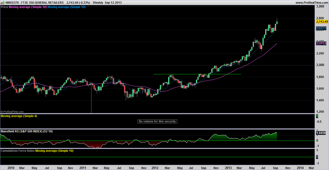 RE: Watchlist - Investor method - isatrader - 2013-09-10 (2013-08-13, 11:51 PM)isatrader Wrote: The technical attributes of AKS has gone a score of 1 out of 9, to a 4 out of 9 this week currently, with the 30 week weighted MA turning up, signalling that it's consolidation of the last four months is now forming a Stage 1 base. So one to watch for a breakout after a two year Stage 4 decline. I highlighted AKS back in mid August http://stageanalysis.net/forum/showthread.php?tid=15&pid=1270#pid1270, as it's technical attributes had improved from a score of 1 out of 9 to a 4 out of 9. Over the last month it's continued to base and is today attempting to breakout in early Stage 2A. It's only a very small base after a long term decline, and it has a fair amount of near term resistance, but the technical attributes have improved further and are now a 6 out of 9, and the sector seems to be improving also with the SLX etf making a head and shoulders breakout today, so thought it was worth highlighting in the watchlist. Attached are the charts RE: Watchlist - Traders method - goodtyneguy - 2013-09-11 Just to follow up on the conversation about sugar started in post 173 (the weekly chart can be viewed there and in 174). Look for sugar to break out into stage 2A. RE: Watchlist - Investor method - isatrader - 2013-09-11 (2013-08-03, 12:19 PM)isatrader Wrote: Facebook moved into Stage 2A last week, and changed the technical attributes score to a maximum 9 out of 9. Volume was very strong on the gap up last week, and has continued to be strong during this week, so this one has potential for a strong Stage 2 run as it fulfills all of the methods key requirements. Attached is the weekly and daily charts. I highlighted that Facebook was in Stage 2A at the beginning of August and was seeing some good volume come in as well as strong technical attributes. Today saw it close at a new all time high above the high reached on the IPO of 45, but not by much though, and only on average volume for the day. So although it's cleared resistance and is in a strong Stage 2 advance, it's still really hard to find an entry point currently, as the investor stop loss distance is over 50% away. So thought it was worth highlighting on the watch list. RE: Watchlist - Investor method - isatrader - 2013-09-12 Here's two stocks that have been showing a large volume increase since they moved into Stage 2 - ADEP and UQM. RE: Watchlist - Traders method - goodtyneguy - 2013-09-12 HOME.L broke out on a gap up today on about 2 times average 50 day volume. Need to see a pull back and then execute with a percentage, ATR multiple or other proprietary stop loss positioning method rather than under the last distant swing low. The nearest overhead supply is over 2 years away. RE: Watchlist - Traders method - isatrader - 2013-09-12 A few big volume movers. Potential Stage 2 continuation in VRNT and a Stage 2A breakout yesterday in VTUS RE: Watchlist - Traders method - gbarbs - 2013-09-13 IDIX was rejected a couple of days ago at resistance and dropped significantly (see the daily). But today my buy stop of 5.51 was hit. Volume is pretty good so I am going to stick with it. A good stop looks like maybe 4.74 but that is about 14% away so I am going to look for something closer to 4-6%. RE: Watchlist - Investor method - isatrader - 2013-09-15 One for the watchlist imo is RSH, which after an initial early move into Stage 2A at the beginning of the year, then fell back sharply below the breakout level in the summer. However, it's now recovering once more and is close to a new Stage 2A breakout above the May swing high, so I'd put it as in Stage 1B currently in this weeks second strongest sub-sector (Electronics Stores) in the US. See the main thread for the full sectors list: http://stageanalysis.net/forum/showthread.php?tid=1&pid=1631#pid1631 Attached is the weekly chart and a 4.6% box size by 3 reversal P&F chart (I use the 20 day ATR figure to determine the percentage box size to use). |