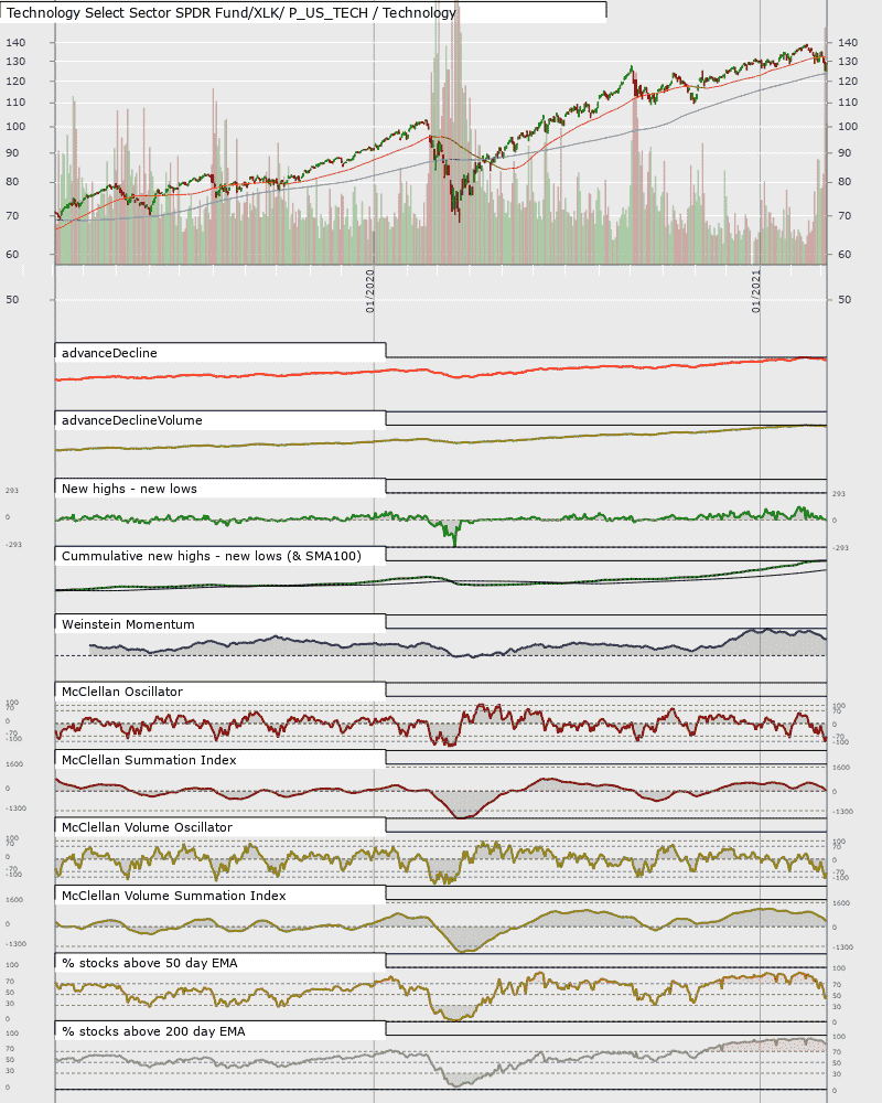 Nasdaq major stocks - isatrader - 2021-03-06 Nasdaq ten major stocks that make up around 50% of the Nasdaq 100 weighting. Majority are in late Stage 3, with a few testing the Stage 4A level today. But the majority are at a pivotal point with the market makers testing the demand today across the board, by probing below the breakdown levels in a lot of stocks early in the day. So a key week next week coming up as to whether the correction gets worse or has managed to put in a potential swing low today. RE: Stan Weinstein's Stage Analysis and Market Breadth - Technical Analysis - pcabc - 2021-03-07 Sector breadth overview Everything looking negative except the US financial sector, UK fixed line telecoms and oil and gas producers. The two latter appear to be coming out of Stage 4 whereas the US fiancial sector has been strong for a while. Major indices: US Sectors: UK Sectors: Commodities: Miscellaneous: I'll post the US sector breadth charts spearately, but the UK fixed line telecoms and oild and gas producer charts below: RE: Stan Weinstein's Stage Analysis and Market Breadth - Technical Analysis - pcabc - 2021-03-07 US Sectors Stan Weinstein's Stage Analysis and Market Breadth - Technical Analysis - isatrader - 2021-03-07 US Sector & Major Index ETFs Relative Strength Table Energy, Financials & Small Caps top the table currently. S&P 500 is the baseline to compare RS to. RE: Stan Weinstein's Stage Analysis and Market Breadth - Technical Analysis - pcabc - 2021-03-14 Market breadth overview Breadth has increased over the last week. There are still some danger signs in the NASDAQ and some of the sectors. However, I think we are at a period where there indicators are likely to fluctuate. I'm wondering if I ought to add my running scores to the charts (not plotted here), I removed them to make things simpler. However, they might tie in these overal breadth scores with the charts I produce better. Major indices: US Sectors: UK Sectors: Commodities: Miscellaneous: RE: Stan Weinstein's Stage Analysis and Market Breadth - Technical Analysis - pcabc - 2021-03-14 US Sectors: Momentum - sectors ranked by strength Based on slopes of the 50 day and 150 day simple moving averages. US Sector & Major Index ETFs Relative Strength Table - isatrader - 2021-03-14 US Sector & Major Index ETFs Relative Strength Table using the stockcharts SCTR score Energy, Small Caps & Financials still top the table currently. Former leading growth stocks in the Nasdaq bounced back this week, but still lagging with a lot showing signs of Stage 3 now. S&P 500 is the baseline to compare RS to. 104 Dow Jones Sector Industry Groups Relative Strength Tables 104 Dow Jones Sector Industry Groups sorted by Relative Strength. Purpose is to track RS changes across the groups each week using stockcharts SCTR rating. Attached current top 50 sectors plus sectors with the strongest moves this week and YTD You can find out which stocks are in each industry group by going to https://stockcharts.com/freecharts/industrysummary.html#&t=T and clicking on the name of the group RE: Stan Weinstein's Stage Analysis and Market Breadth - Technical Analysis - pcabc - 2021-03-20 Sector overviews After strengthening last week breadth has dropped back this week. Major indices: US Sectors: UK Sectors: Commodities: Miscellaneous: |
