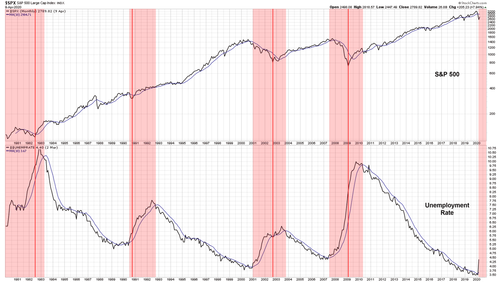 Re: Still no trigger to go long the stock market based on stage analysis.Hi all, I have missed the entire recent rally in stocks following Stan's method. If one is disciplined one will wait until the SPX breaks above a rising 30 EMA to start going long stocks. I wonder, would one go long some stocks if they are above a rising 30 ema now even if the SPX is not above a rising 30 EMA? Unless I misunderstood, Stan advised to start buying individual stocks only when the stock market was back above a rising 30 ema weekly. I have scanned for myself stock market bottom (bull market) charts from Stan's book (attached) to remind me of when to start buying stocks. It does hurt having to wait for the market to break above a rising 30 EMA to start entering stocks when one sees such a huge rally as we saw recently where folks made more money in a week or two than many will make in a few years. Thanks for your thoughts. RE: US Stocks Breakouts & Breakdowns - SP500, NYSE, & Nasdaq Stock Charts - malaguti - 2020-04-12 (2020-04-12, 01:25 PM)marry123 Wrote: Re: Still no trigger to go long the stock market based on stage analysis. Its the Simple MA 30, rather than exponential ma. Does it hurt? yes especially given how far we are away from the sma, however if stocks were to start tanking again, we'd be justifying to ourselves how right we were to follow his method. we haven't really tested the lows yet to be able to say we've had a bottom and therefore I think its far too early to say the method is rock solid, over countless years its proved itself as being an incredibly effective entry criteria i'd happily wait, and wait some more to get a proper confirmation that its safe to start pumping money into equities right now if anything i'd be looking to other markets. however cash is king right now RE: US Stocks Breakouts & Breakdowns - SP500, NYSE, & Nasdaq Stock Charts - marry123 - 2020-04-12 (2020-04-12, 01:52 PM)malaguti Wrote:(2020-04-12, 01:25 PM)marry123 Wrote: Re: Still no trigger to go long the stock market based on stage analysis. Thank you Malaguti for pointing out it is the 30 MA weekly not the 30 EMA. I wonder why I thought it was the 30 EMA as looking at Stan's book right now it clearly says "30 MA" on the weekly. I agree, one needs to continue to wait to see if the stock market breaks above a rising 30 MA weekly regardless of how much of the rally one has missed so far. I am usually a good contrarian indicator as when the market crashed to around 2200 S+P I thought it would keep crashing to at least 1800 and now that we had this big 50% retrace the emotions in me tell me that it will just keep ripping higher as the Fed keeps pumping QE. Good to hear you are also waiting for a proper buy signal for the stock market and that I am not the only one who missed the big bounce so far ( I had various stocks on my watchlist a few weeks back that have now bounced roughly 40%-75%). Unemployment rate versus the S&P 500 - isatrader - 2020-04-12 I'm in the process of preparing my latest breadth video. But thought due to the discussion here that this 40 year chart of the how the unemployment rates and markets correlate might make you less worried about missing the bounce by following the rules. As as you can see, history tells us the odds of further down side seems high when unemployment is trending up, as 3 out of 4 of the previous periods didn't bottom for over a year. Only 1990 bottomed quickly. Note: the 1987 crash that everyone is comparing this time too, didn't have any uptick in unemployment. It was purely a stock market crash, not an economic crash. RE: Unemployment rate versus the S&P 500 - malaguti - 2020-04-12 (2020-04-12, 04:09 PM)isatrader Wrote: I'm in the process of preparing my latest breadth video. But thought due to the discussion here that this 40 year chart of the how the unemployment rates and markets correlate might make you less worried about missing the bounce by following the rules. As as you can see, history tells us the odds of further down side seems high when unemployment is trending up, as 3 out of 4 of the previous periods didn't bottom for over a year. Only 1990 bottomed quickly. one image shows the entire story, fantastic chart. Thanks ISA |