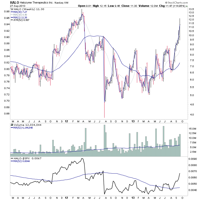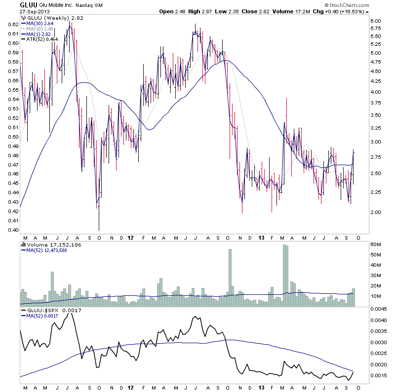 RE: Watchlist - Traders method - isatrader - 2013-09-26 ABT is currently in Stage 3B with a head and shoulders pattern near completion, close to a potential Stage 4A breakdown, so one to watch. RE: Watchlist - Traders method - isatrader - 2013-09-27 Stage 2 continuation move in DMND on almost 4 times the average volume today. It broke out into early Stage 2A on good volume in early June, and has worked through some of the technical resistance during it's initial Stage 2 advance since, while outperforming the S&P 500. So I think this has potential for both the trader and investor methods. Attached is the charts. RE: Watchlist - Traders method - isatrader - 2013-09-27 A few stocks with potential to make Stage 2 continuation moves in the near future for the watchlist - SINA, YOKU and DANG RE: Watchlist - Traders method - isatrader - 2013-09-27 NFX is currently in Stage 1B at the top of the range with some above average volume coming into the stock the last three weeks and the relative performance has just crossed the zero line. So one to watch for a move into Stage 2A possibly. RE: Watchlist - Investor method - isatrader - 2013-09-27 A couple of today's early Stage 2 movers with volume and strong relative performance - CYTR and JASO RE: Watchlist - Investor method - anupam384 - 2013-09-28 (2013-09-25, 02:41 PM)isatrader Wrote: MAKO has been mentioned a number of times over the last few months as it broke out into Stage 2A in early August. anupam384 highlighted it in the thread http://stageanalysis.net/forum/showthread.php?tid=15&pid=1245#pid1245 and it came up as a strong candidate in the end of month review as well http://stageanalysis.net/forum/showthread.php?tid=15&pid=1446#pid1446 isatrader, yes I am still in RMTI up 110% and MAKO. Unfortunately I sold half my position just before it went up 100%. That is why I hate options, I thought I would move my money to a different stock which has not moved significantly yet. Did you get a chance to take a position in RMTI like you mentioned in one of the earlier posts? Anyway, I am also in CPRX. As far as the stocks that are in my watchlist or that I plan to get into soon are as follows: znga - like it halo - missed it gern - missed it gluu - will wait for it breakout ctic - not sure if the base is in yet pacb - like it idra - love it appy - will wait for it to breakout onty - will wait for it breakout gnvc - not sure if the base is in yet Over to you experts ! RE: Watchlist - Investor method - theory6453 - 2013-09-28 (2013-09-28, 03:44 AM)anupam384 Wrote: As far as the stocks that are in my watchlist or that I plan to get into soon are as follows: Thanks anupam384! Of your picks, I think I also like IDRA the best (especially since pacb had HUGE move this week and would qualify as 'missed it' for me... hope you got in). IDRA doubled in value since breakout and is now in a significant 30%-40% pullback. The majority of technicals look good to me to move higher and Health Care sector and Biotech sub-group are both in Stage 2. My one main concern would be that the volume has been higher on the pullback than it was on the actual breakout and we have talked about wanting to see the pullback on declining volume. Otherwise I would like to continue to see it pullback to $1.50 entry point before moving higher. It seems to have a lot of potential where I think ZNGA may still be a little premature. Thanks for the heads up! ***Update - Here's an interesting article on IDRA http://seekingalpha.com/article/1712362-idera-phase-2-data-provides-for-exciting-q4-2013-and-q1-2014 RE: Watchlist - Investor method - isatrader - 2013-09-29 (2013-09-28, 03:44 AM)anupam384 Wrote: isatrader, yes I am still in RMTI up 110% and MAKO. Unfortunately I sold half my position just before it went up 100%. That is why I hate options, I thought I would move my money to a different stock which has not moved significantly yet. I wasn't overly keen on RMTI, as when you highlighted it, it was only in Stage 1A, but it obviously moved very quickly into Stage 2, and has done amazingly well for you. So I'm glad you are doing so well with it, but it was a bit too speculative for me personally. (2013-09-28, 03:44 AM)anupam384 Wrote: As far as the stocks that are in my watchlist or that I plan to get into soon are as follows: With the above list I'll try to just give my opinion of the Stages, relative performance, volume and resistance, as I don't want to influence you unduly. ZNGA - closed the week above the Stage 1 range, and so is at the initial Stage 2A breakout point. Volume was 1.66 x the average, so a little bit short of the two times volume requirement, and relative performance closed above the zero line. HALO - in Stage 2 for quite a few months, but broke above key resistance four weeks ago and is showing good relative performance and volume. Extended short term. GERN - broke out into Stage 2A three weeks ago, and has moved sharply higher on increasing strong volume since, and cleared the 2012 high with this weeks close. Very extended short term. GLUU - in Stage 1B, close to the Stage 2A breakout point. Volume has increased the last few weeks on the up weeks, and relative performance is close to crossing the zero line. Near term resistance from earlier in the year though if it does breakout. CTIC - broke out in Stage 2A this week on over three times the average weekly volume, which has been increasing for the previous two weeks also. Relative performance also closed above the zero line, and it has some near term resistance just below the 2 level to get through. PACB - made a sharp Stage 2 continuation move this week on 7 times the average weekly volume. Relative performance has been above the zero line for most of the year, and it closed the week above the 2012 high. Extended short term. IDRA - broke out into Stage 2A in late July and moved sharply higher over the next two months on strong volume which built until the swing high at the end of August. It then pulled back on heavy volume