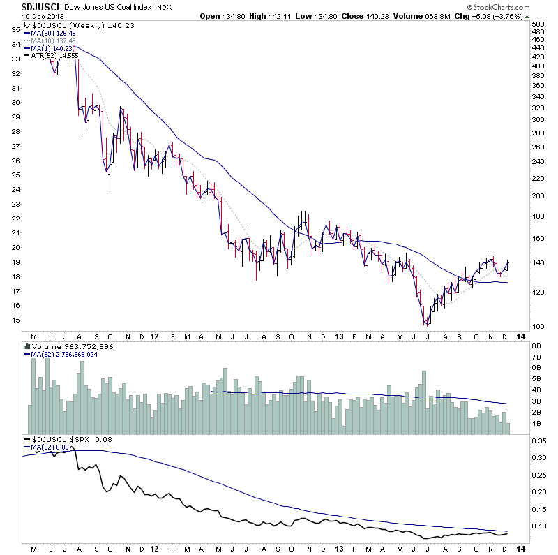 RE: Watchlist - Traders method - isatrader - 2013-12-11 (2013-12-10, 11:53 PM)Tryst Wrote: It is crazy all these bullish charts, yet on LSE the mining sector, esp. those on AIM are making new 52 week lows. I you look at the weekly sector relative performance charts that I post for the UK sectors, you'll notice that currently only three UK sectors out of 38 are above their relative performance zero lines, and this has been mostly the case for the whole year with the UK under performing the US by a large degree. So it's very hard to find decent UK long picks currently. (2013-12-10, 11:53 PM)Tryst Wrote: a type of pattern that Weinstein has mentioned in his book, and touched on in a few interviews...stocks with saucer bottoms. Two from LSE are below, both mentioned here, but i have zoomed out a bit. Notice the slight pick up of volume on the right-hand side of the saucer as the prices start to rise slightly. You need to change you scale type in the price settings to "Logarithm scale" as it's hard to see the price action in the bases after long declines using standard scaling, as you'll see on the attached same charts, they both had fairly sharp bases on the standard weekly charts, although you are correct that over the very long term they show more curved bases. RE: Watchlist - Investor method - isatrader - 2013-12-11 Coal has been one of the strongest sectors over the last five days, and there are a number of stocks already in Stage 2 advances which you should look at if you are interested in the sector, as the method is about buying the strongest stocks. But I thought I'd highlight that a few of laggard stocks are now in Stage 1 again, after failed Stage 1 bases in late 2012 - ANR, ACI and BTU. Also, the sector chart Dow Jones US Coal Index ($DJUSCL) is also in Stage 1 currently, which can be traded by the KOL etf, although you'll note from the attached performance chart that it's tracking is not very accurate and it has underperformed the coal index by over 10% in the last 200 days. So the Coal sector - which is the only negative Energy sub sector over the last year - looks to be making another attempt at basing, and so is an area to watch for a potential move into Stage 2, as the relative performance on the sector chart is much closer to it's zero line this time, and a Stage 2A breakout above the November swing high would also nudge it just above the weekly Ichimoku cloud resistance, which is much thinner here. RE: Watchlist - Investor method - isatrader - 2013-12-11 Staying with the Energy Sector - Pipelines ($DJUSPL) has been forming a Stage 3 top over the last six months or so and is attempting to breakdown into Stage 4A this week, although it's still be above the June low currently, which could be technical resistance for it. Relative performance has been trending down for over six months and the 30 week moving average is turning down also. Attached are the sector charts. RE: Watchlist - Investor method - Red1324 - 2013-12-11 In Financials I see Diversified Reits breaking down into stage 4 recently. As for specific stocks I have attached the ones I am looking at currently that are in stage 3 and possibly going to break resistance/long term trend lines soon. RE: Watchlist - Investor method - isatrader - 2013-12-11 (2013-12-11, 03:08 PM)Red1324 Wrote: In Financials I see Diversified Reits breaking down into stage 4 recently. As for specific stocks I have attached the ones I am looking at currently that are in stage 3 and possibly going to break resistance/long term trend lines soon. Thanks, I thought no one was going to say anything to my post the other day about the sectors people are looking at. Have a look at the other REIT sectors as well, as the majority are in a similar position to the Diversified REITs. RE: Watchlist - Investor method - Red1324 - 2013-12-11 Here are some Pipeline stocks that are in my watchlist for longer term shorts: BPL, DPM, ENB, GEL Quote:Thanks, I thought no one was going to say anything to my post the other day about the sectors people are looking at. Have a look at the other REIT sectors as well, as the majority are in a similar position to the Diversified REITs. Funny thing is I was going to make a post yesterday about Coal and pipelines as possible plays but just didn't get to it. Good thing I saw you make the post before I started to work on mine. RE: Watchlist - Traders method - isatrader - 2013-12-11 PLAB is attempting to make a Stage 2 continuation move today against a weak market and is showing good volume relative to it's daily average. RE: Watchlist - Traders method - isatrader - 2013-12-11 CORT is attempting to make a Stage 2A breakout and today closed above it's July swing high on around two times the average daily volume. Relative performance is above it's zero line, but it's still within fairly broad ichimoku cloud resistance on the weekly chart and weekly volume is still below average currently. So not an A+ setup, but it has some of the key ingredients that we look for. Attached is the charts. |
