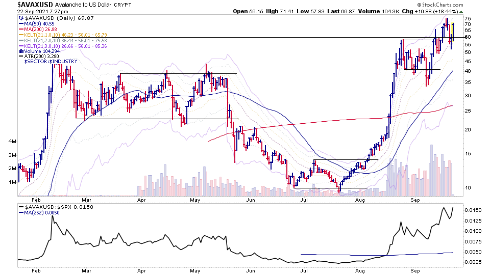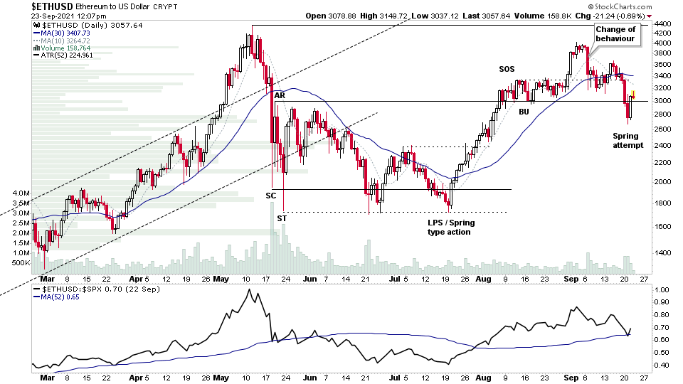 $ALGO.X Algorand - isatrader - 2021-09-18 $ALGO.X Algorand continuing to develop in a flag pattern following the very strong volume breakout move two weeks ago. In the turbulence zone form the high area of the initial high. Crypto majors decline - isatrader - 2021-09-20 Crypto majors off heavily today. Ethereum and Cardano both finding intraday support at whole numbers $CELO.X Celo - isatrader - 2021-09-21 $CELO.X Celo moving through the +1x ATR level today as it attempts to move out fo the backup range $AVAX.X Avalanche - isatrader - 2021-09-22 (2021-09-12, 10:04 AM)isatrader Wrote: Looking through some of the crypto alt coins this morning. $AVAX.X Avalanche is of note with the volume surge over the last 4 weeks and potentially sign of strength rally, which has seen it outperform the crypto majors in the near term. Watching for how it develops on any backup https://twitter.com/Stage_Analysis/status/1436978904011509765 $AVAX.X Avalanche follow up The sign of strength rally developed and it's held up well in the backup to support at the top of the range with a strong rebound today and strongly outperforming bitcoin since mid August Ethereum - isatrader - 2021-09-23 Ethereum with a spring attempt yesterday on the daily chart from the recent backup range, but volume was light Altcoins crossing +1x ATR(21 day) level - isatrader - 2021-09-23 A few of the crypto altcoins moving back above their +1x ATR level today and strongly outperforming bitcoin and the market $CELR.X, $COTI.X, $ELGD.X RE: Ethereum - pcabc - 2021-09-23 (2021-09-23, 01:09 PM)isatrader Wrote: Ethereum with a spring attempt yesterday on the daily chart from the recent backup range, but volume was light I'm assuming that was a reference to Wyckoff, I'm part way through reading up on that. RE: Ethereum - isatrader - 2021-09-23 (2021-09-23, 06:25 PM)pcabc Wrote:(2021-09-23, 01:09 PM)isatrader Wrote: Ethereum with a spring attempt yesterday on the daily chart from the recent backup range, but volume was lightI'm assuming that was a reference to Wyckoff, I'm part way through reading up on that. Yes, a Wyckoff Spring is an event that happens in the later part of an accumulation base structure, but not all. i.e. during the later part of Stage 1. But you can have spring type action in any base structure, where it undercuts a support level, and then rebounds back into the range. |